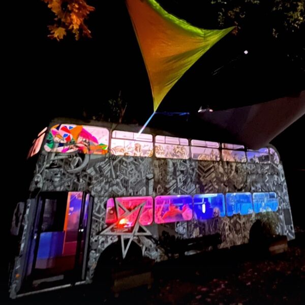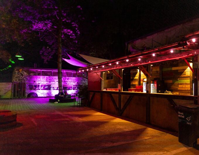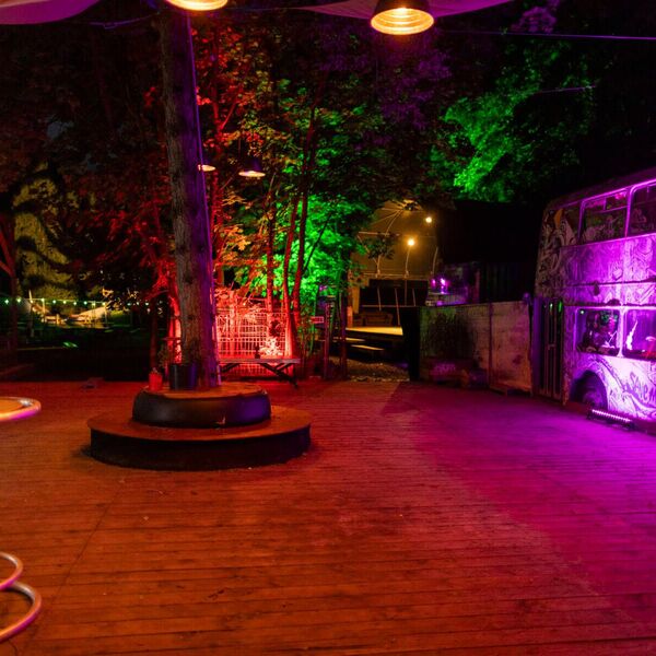 unseren stylischen Doppeldeckerbus, Chillecken zum Abhängen, Mucke aus der Box und Tischtennisplatte – was willst du mehr?